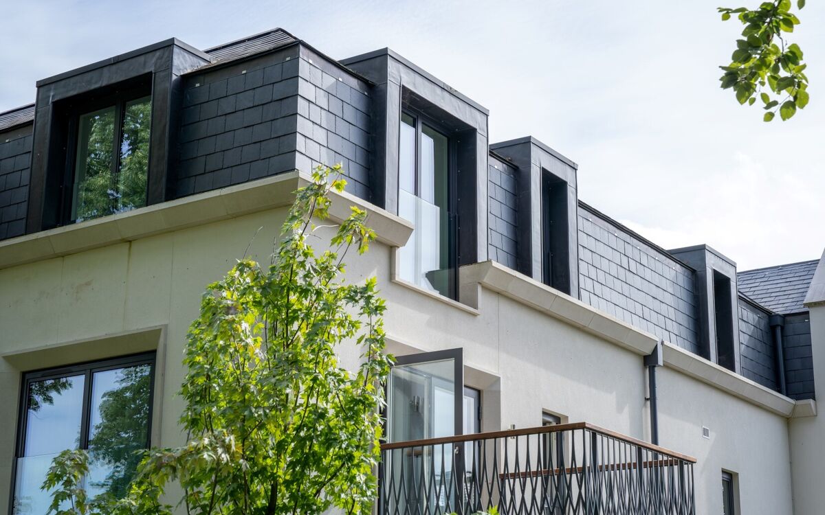 Consistent with Georgian architecture, the cast stone cornices define the roof from the facade. A mansard roof was chosen instead of a third floor to offer more of a domestic feel to the development and keep all the buildings on the site a consistent height with the surrounding area.